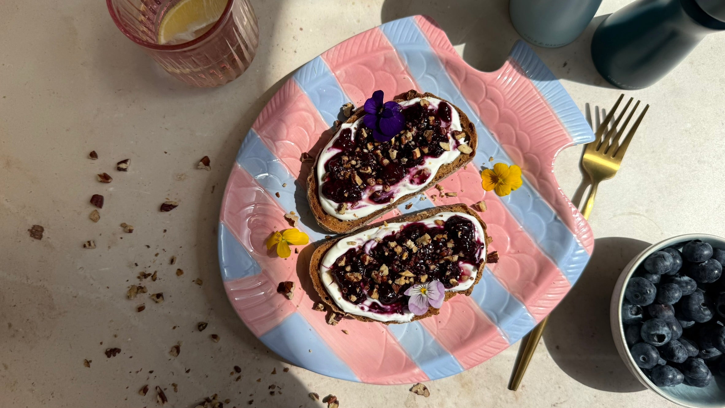 With blueberries now in season across the UK, it’s the perfect time to enjoy my blueberry chia jam toast with yoghurt and pecans recipe.
